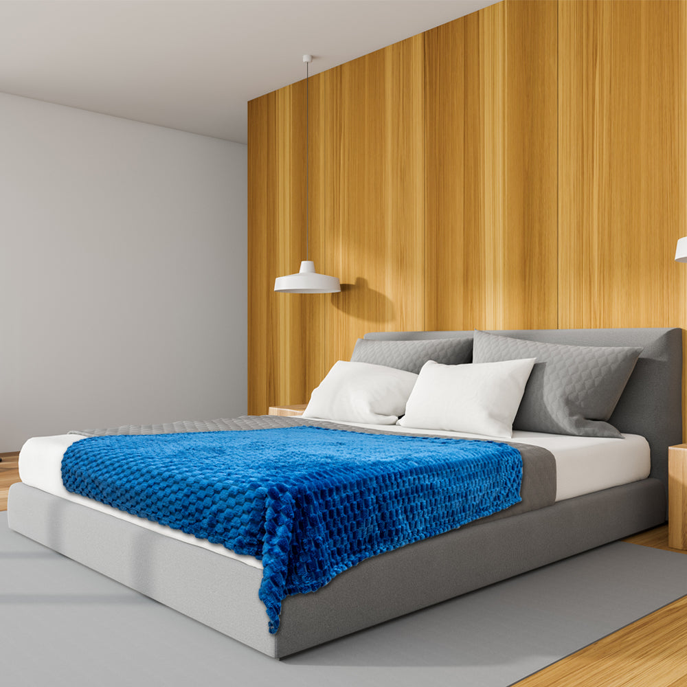This Blue Soft Plush 50x60in Blanket features beautiful bright colors. Blanket is made from a premium 100% Polyester fabric with a rich, soft plush feel. Machine washable convenience and rolled hem edging ensure long-lasting resilience in your home, all while staying warm and cozy!
