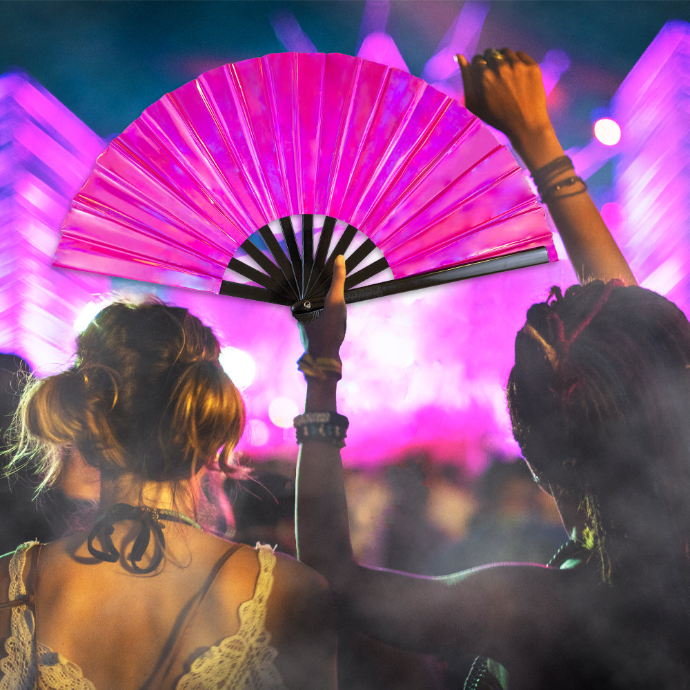 Our Large Metallic Magenta Hand Fan is the perfect accessory for keeping cool indoors & outdoors.