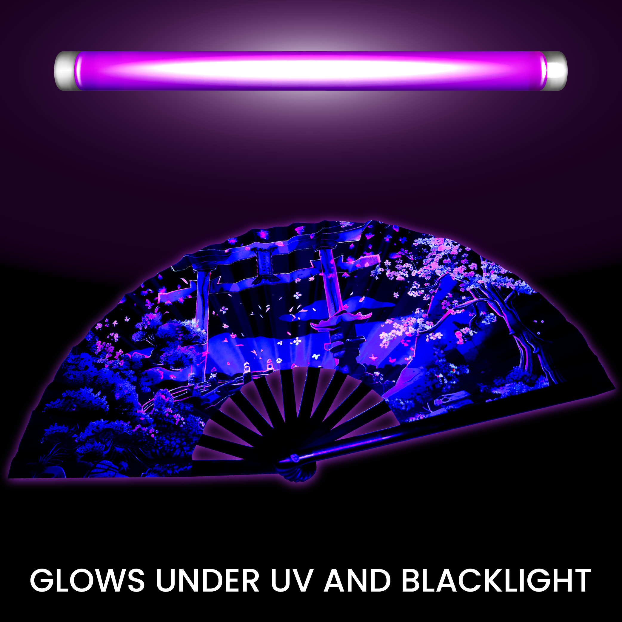 Our Large Sakura Blossoms Blacklight Hand Fan is the perfect accessory for keeping cool indoors & outdoors.